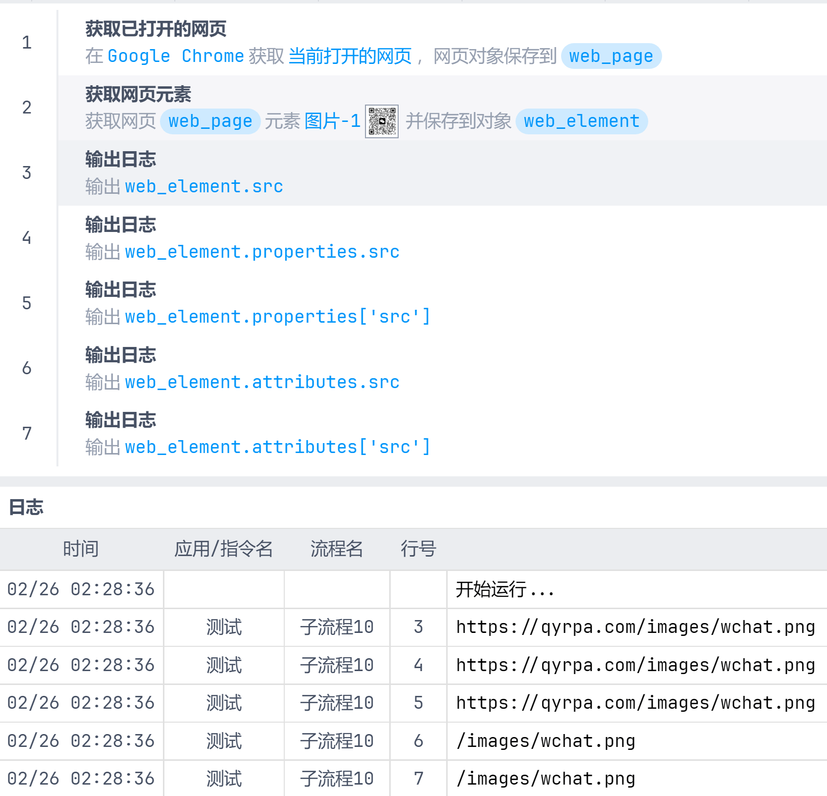 properties.src获取。需要切换成python表达式 - 先获取元素,然后通过