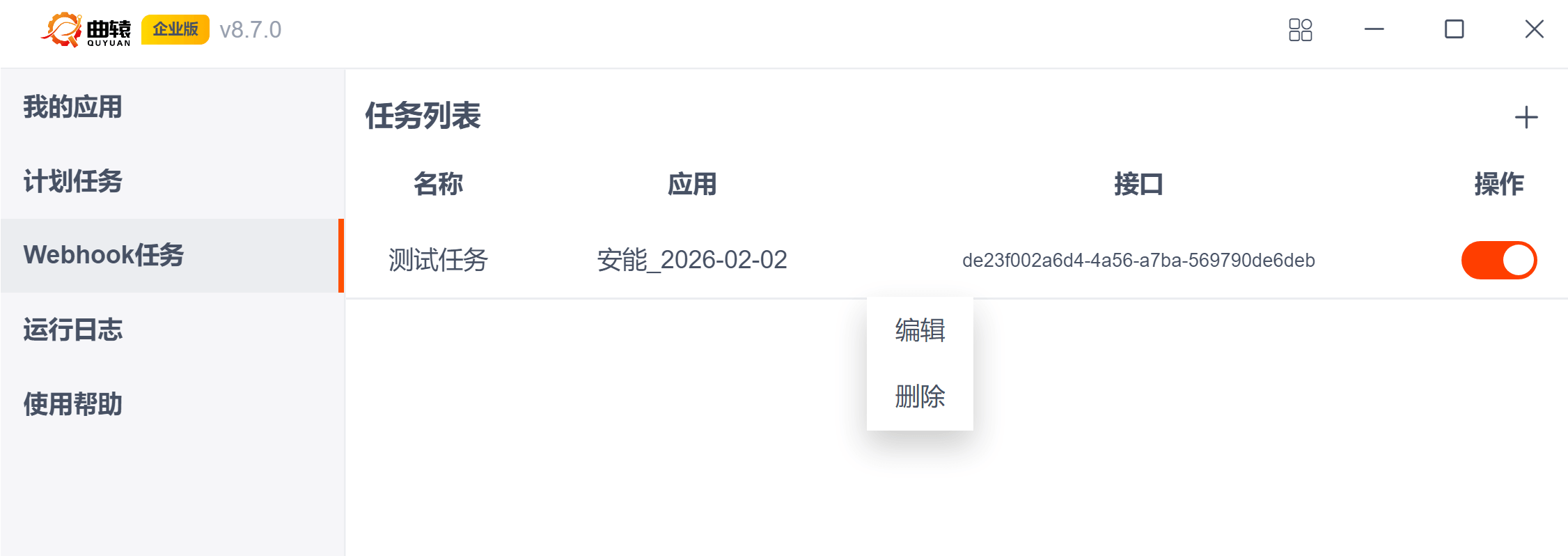 右击任务列表中的任务可以编辑或者删除