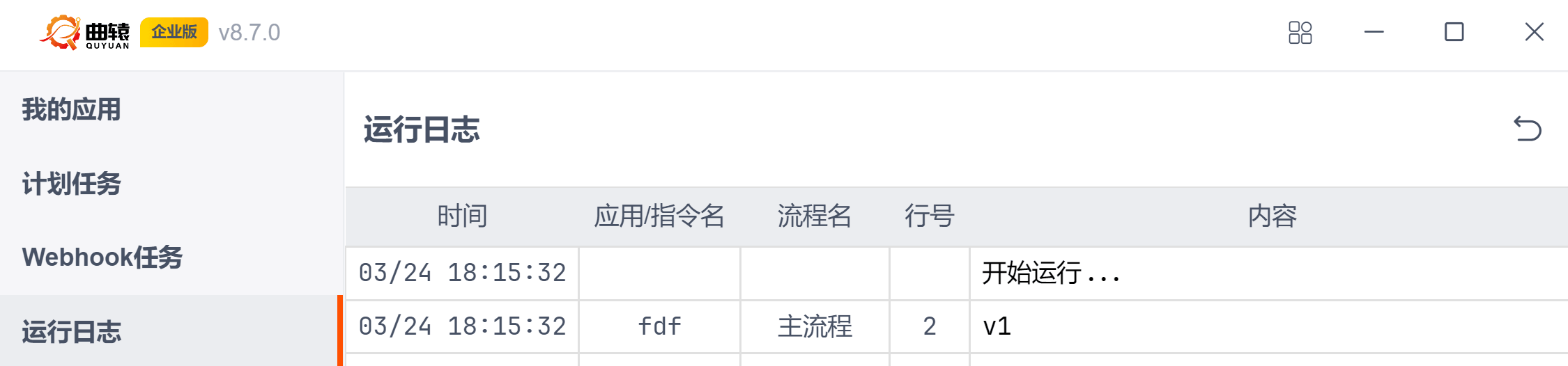 点击 运行日志 - 应用 即可看到运行日志