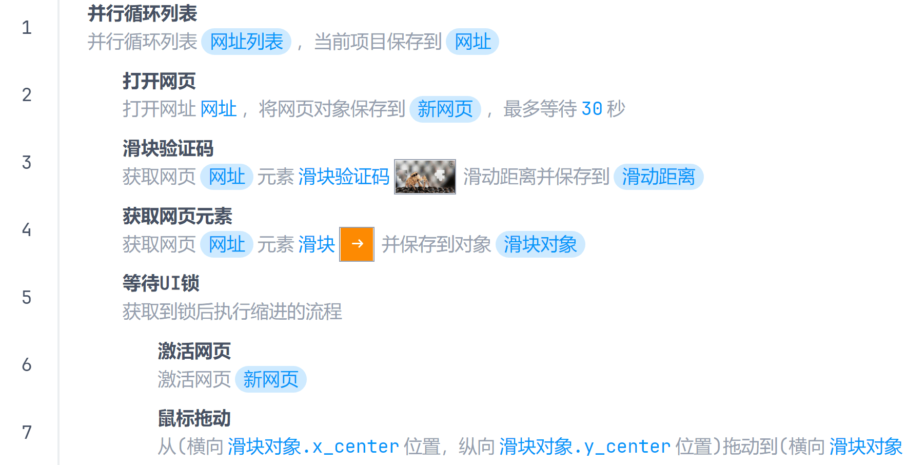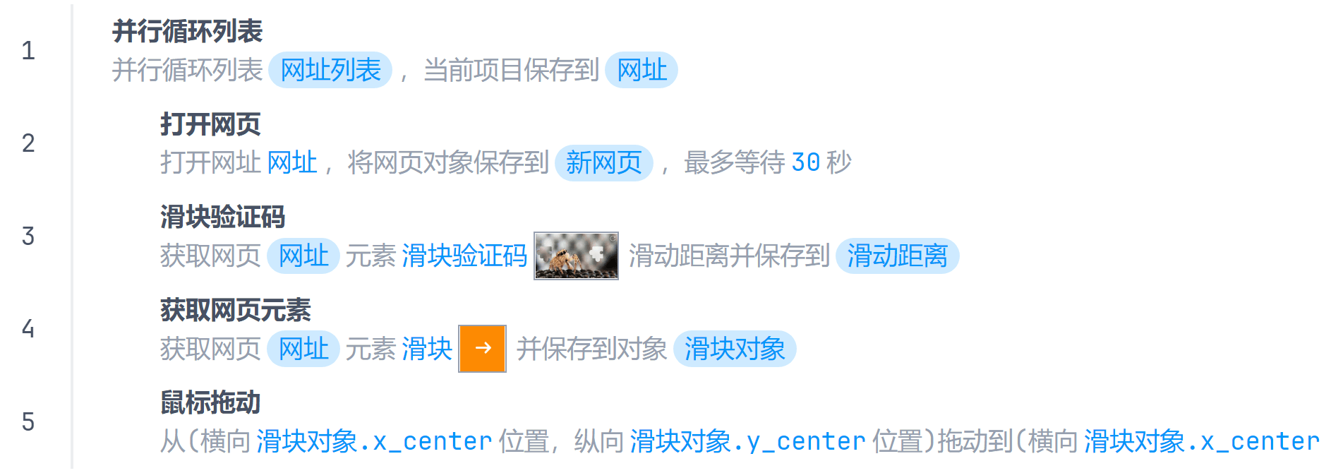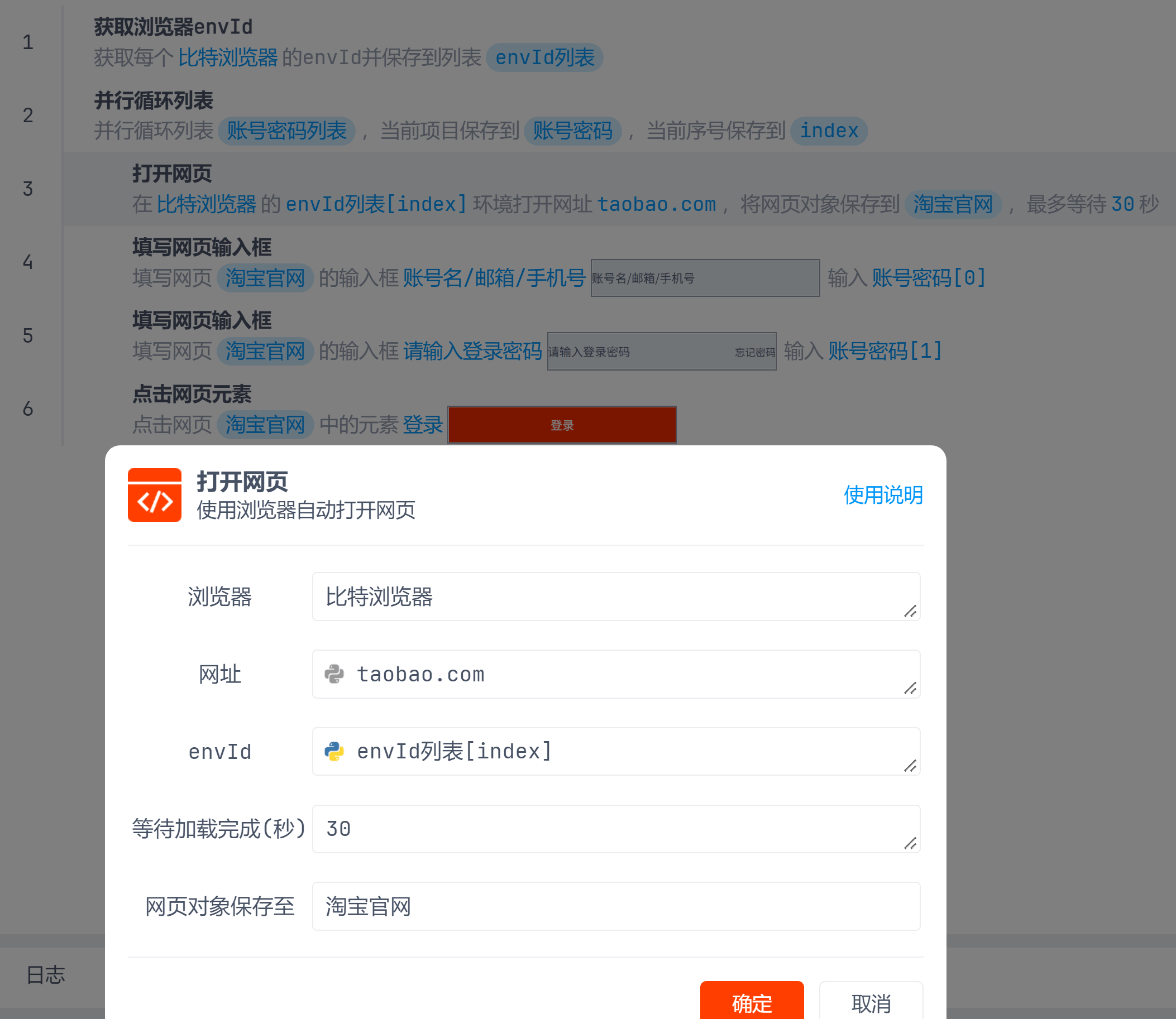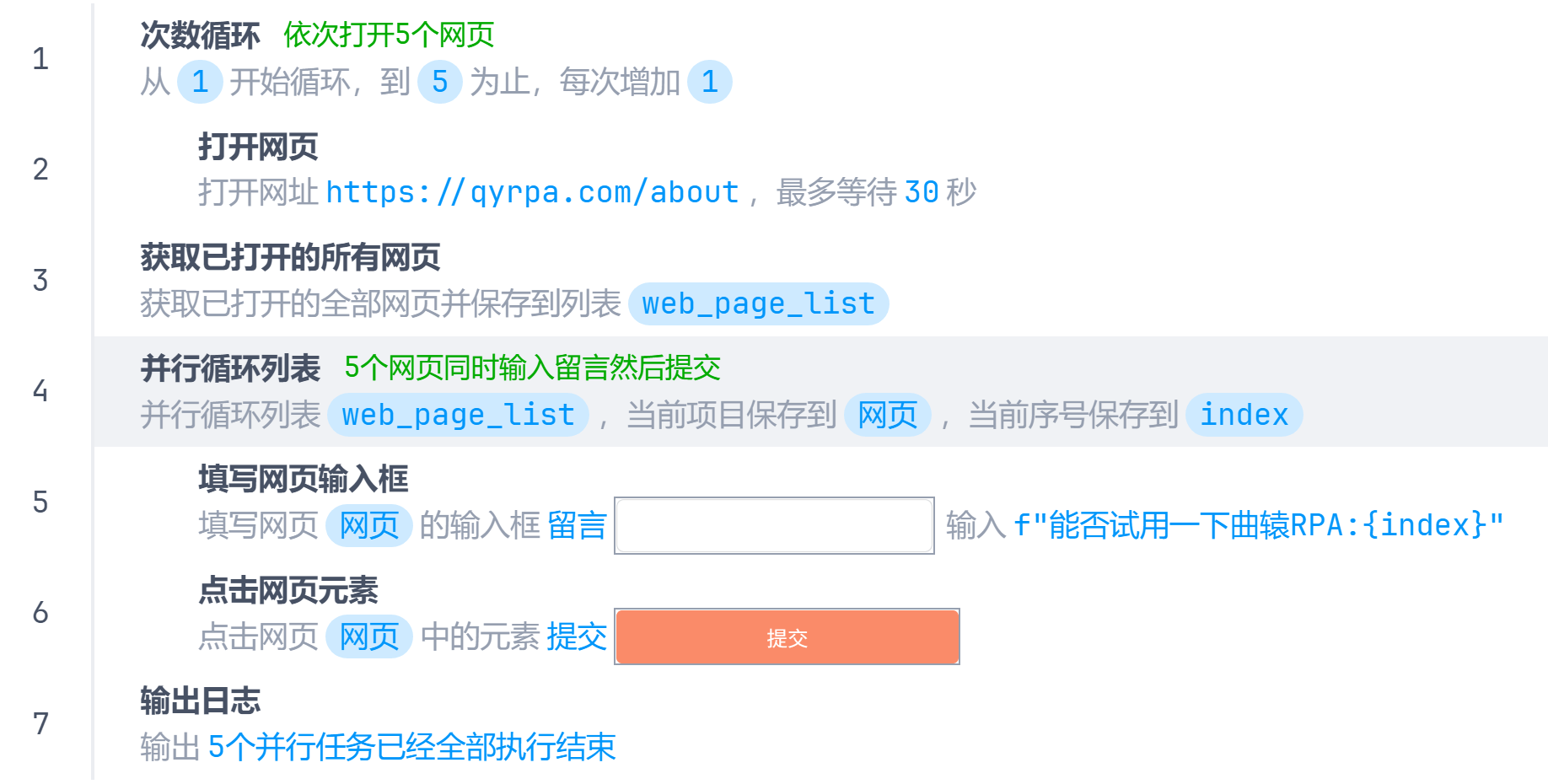 当需要同时操作多个网页时需要使用并行循环列表指令。列表元素类型任意,没有任何要求,列表有几个元素就会开启几个并行任务。