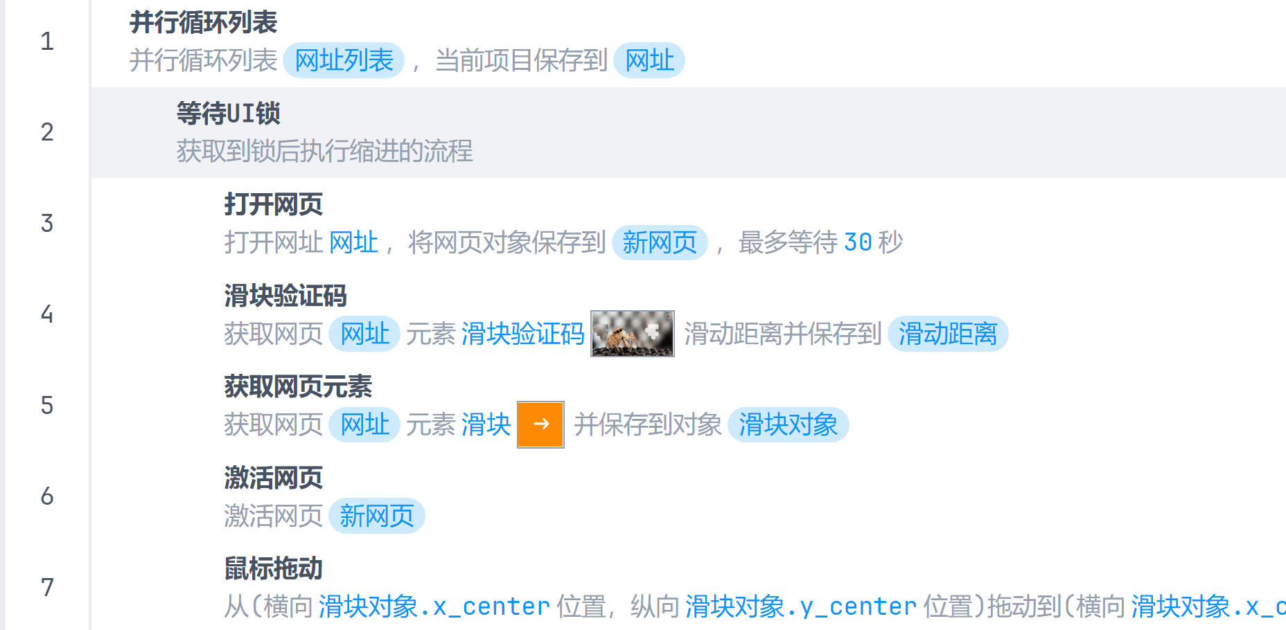 这时你就需要使用等待UI锁指令了,你只需要把激活网页和鼠标拖动指令添加到等待UI锁中,这时当某个任务执行到等待UI锁中的激活网页或者鼠标拖动指令时,其他任务无法执行点击、输入、鼠标拖动等指令,会进入等待状态,