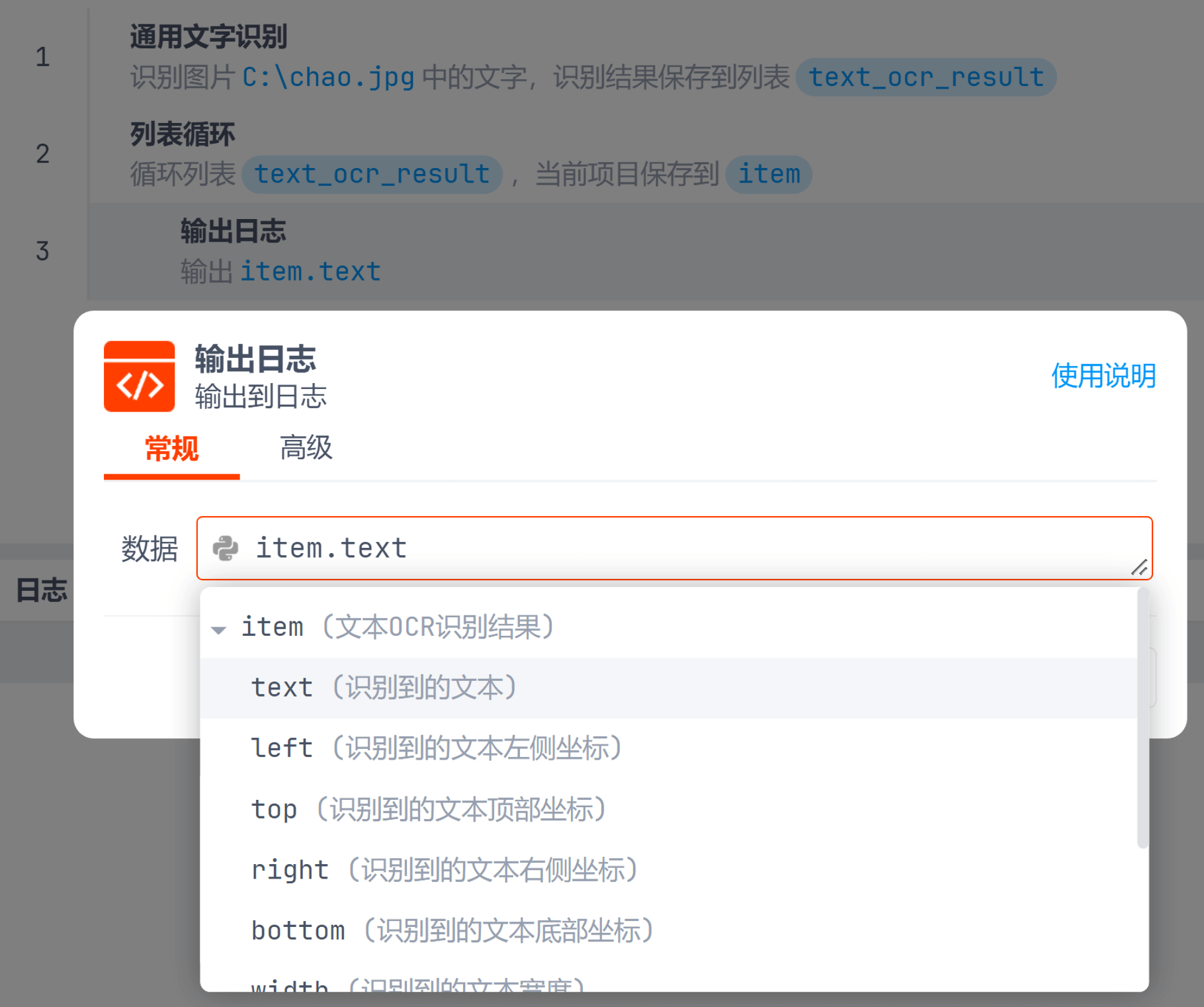 指令人工智能光学字符识别通用文字识别本页总览通用文字识别 指令说明 识别图片文件、桌面元素、网页元素中的字符,可以识别手写字符 可以获取到每段文字在图片、元素上的坐标。 例如您可以把识别发票的文字及坐标数据输入给AI,让AI帮忙分析发票数据