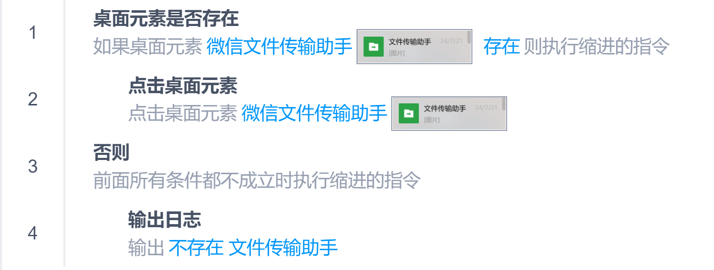 如果存在/不存在指定的桌面元素则执行缩进的指令