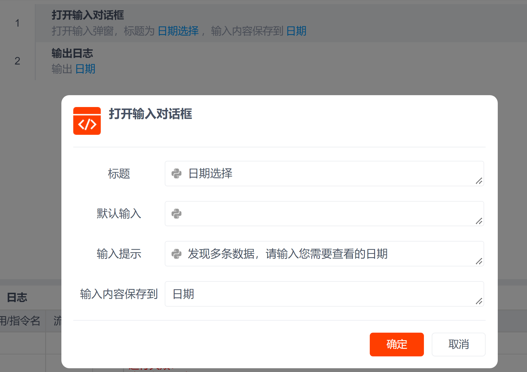 使用该指令可以在自动化任务执行时弹出窗口,让用户输入。只有输入窗口关闭后流程才会继续执行,否则一直等待