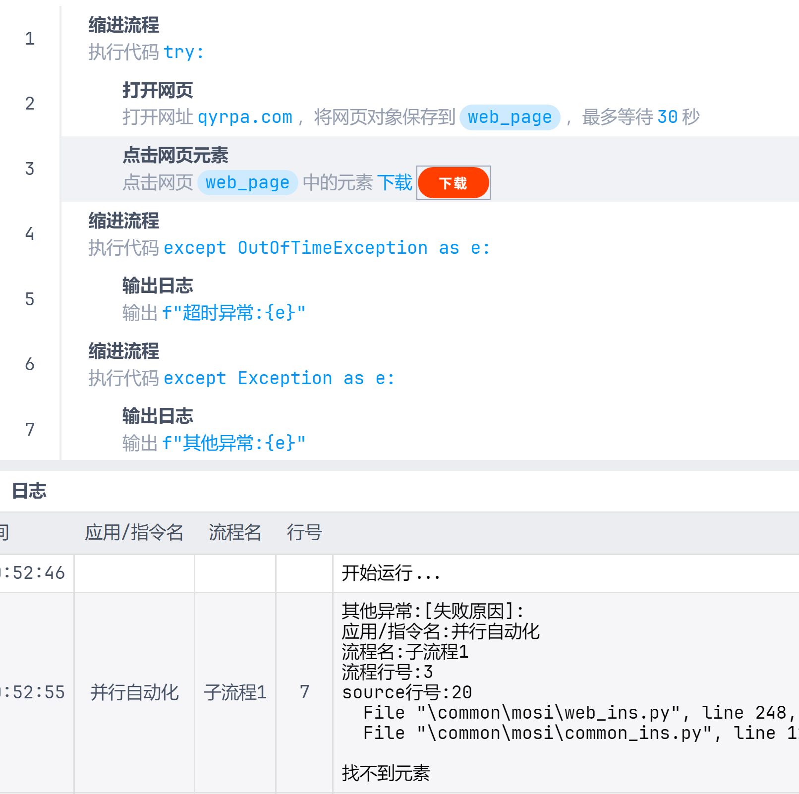 让流程缩进。可以是任意支持缩进的Python代码,例如try、except、with、for、while、if等