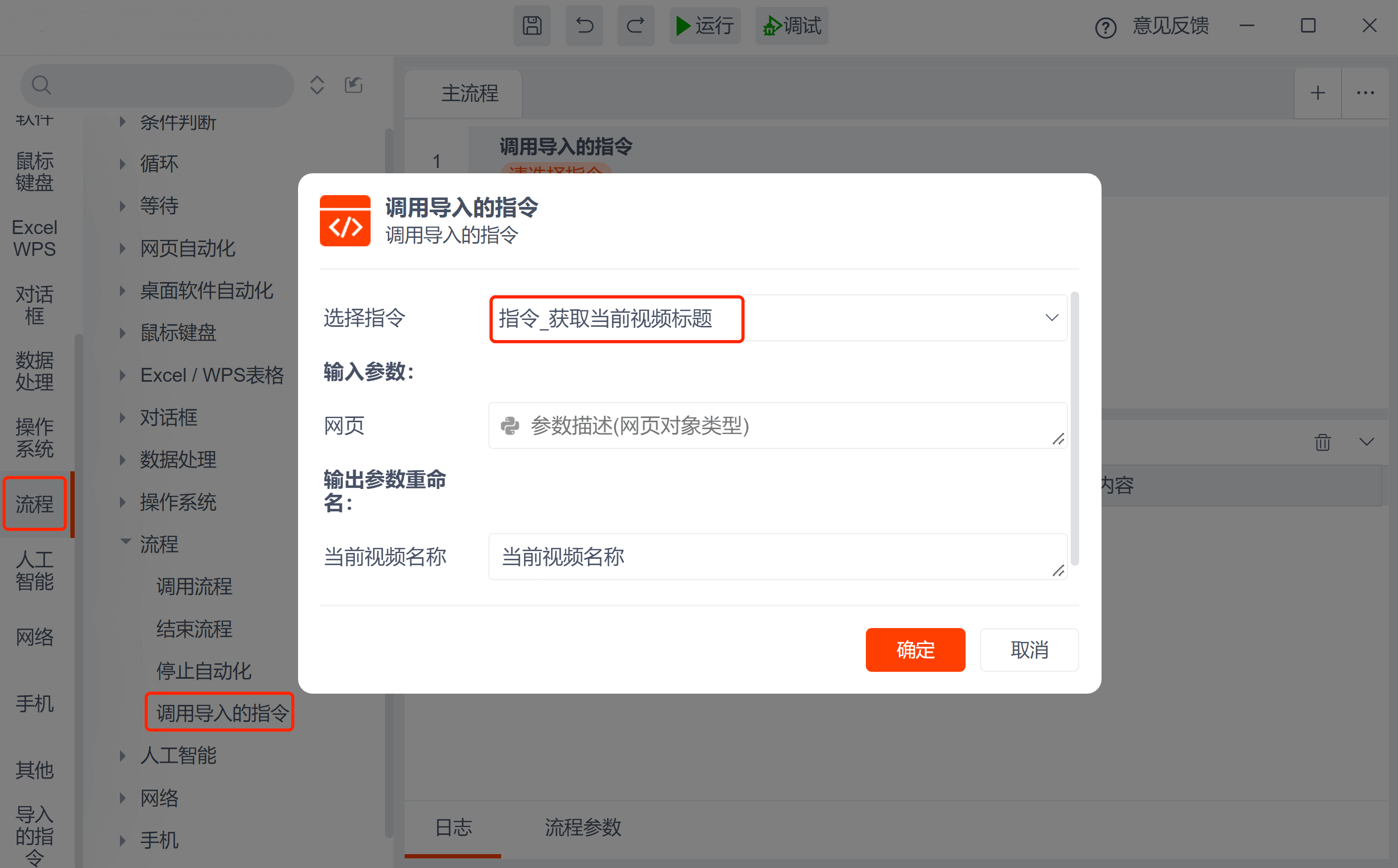 导入的指令中,你可以通过流程-调用导入的指令调用您导入的扩展指令